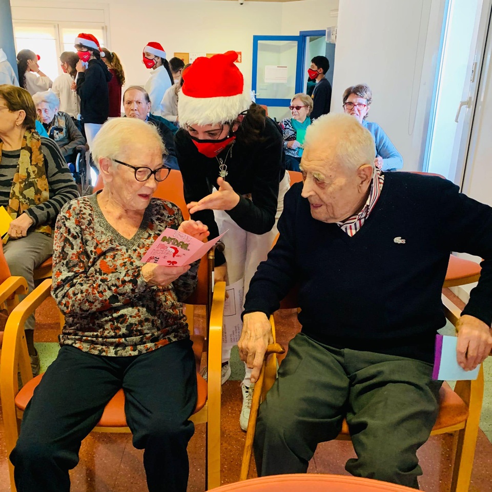L’alumnat de 1r. d’ESO del Col·legi Pompeu Fabra se Salt va lliurar postals i felicitacions als residents i van obsequiar-los amb un recital de cançons nadalenques. Molt agraïts de la vostra visita!!